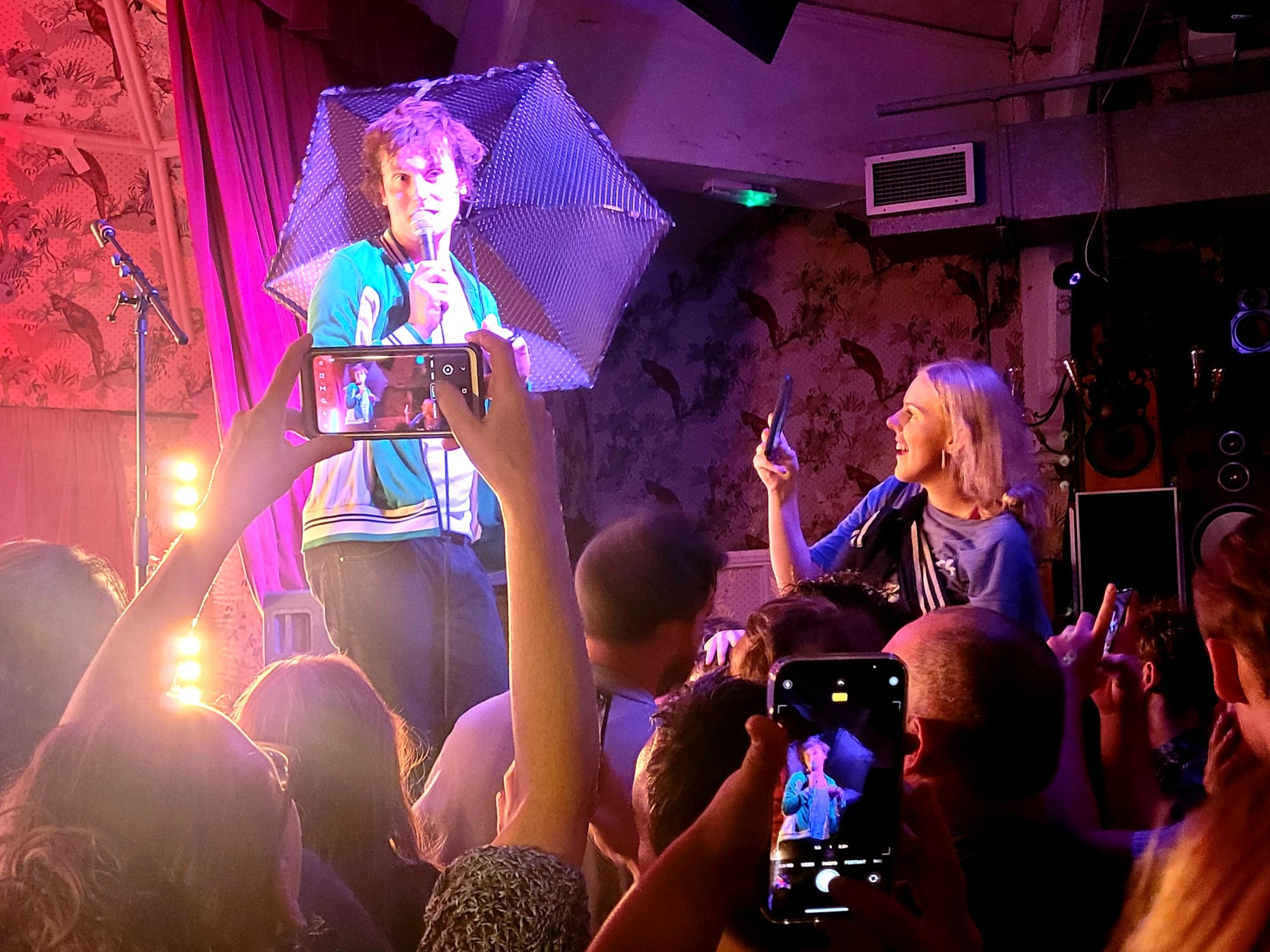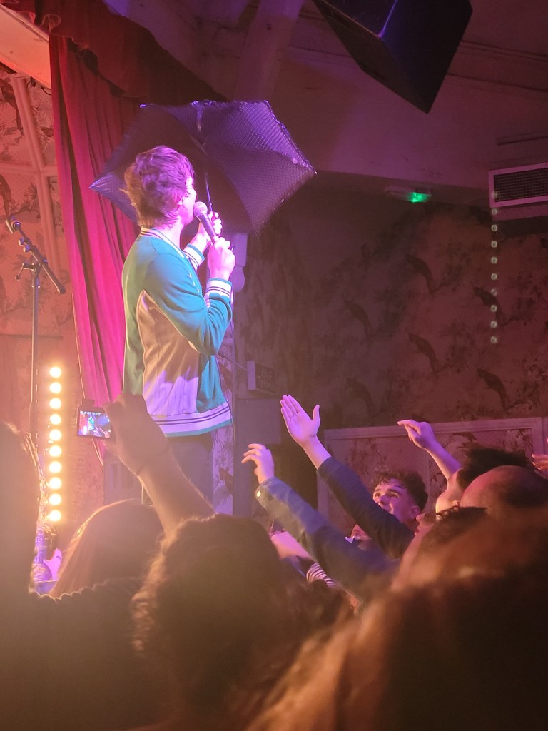 Alcohol Kiss was of course always going to be a highlight of the night. I was stood near the poor bouncer charged with keeping everyone safe; he was about to rescue a crowd surfing lad at risk of being pile-drived off shoulders, when Jack launched into the fray. Pandamonium and a lost trainer ensued, but fortunately no spilt brains on the dance floor (well I was worried; I had my suede Clarks Originals on). Another class moment was Jack larking around in the mosh with an umbrella (and giving the hard working bouncer another panic attack) during the magnificence of Pound Land.
