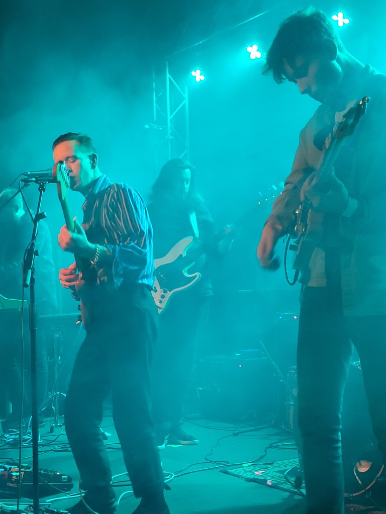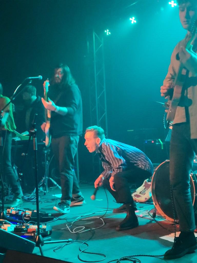 I remember staying at a hotel in Warsaw near the zoo years ago. From our room, we could see the bear enclosure and I watched that poor frustrated, angry bear prowl up and down all day. I didn’t sleep at all that trip for pain for what that bear was going through. Of course the stage is an artificial construct, and the artists performing are only trapped for a while, but the prowl and movements of Household Dogs lead singer Declan Newcombe transported me back to the intensity of emotion, the power, the emotion of a caged animal.