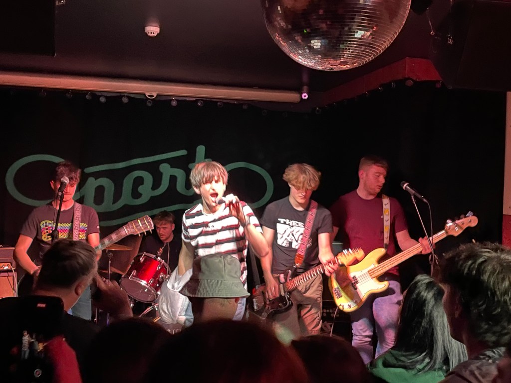 There are, of course, the expected influences of The Stone Roses and Oasis in there but there’s also clearly some Buzzcocks that oozes through too. Their music is heavily underpinned by the bass of Niall McGovern and the percussion of Nathan Kenyon. Jamie Halliday adds the guitar, rhythmic in the main and Marr-esque when needed, giving the finesse and polish to many of their songs. Ben Johnson’s vocals are a delight. There’s energy and accuracy here in the way he performs, bringing the honest at times, zany at others, lyrics to life. He’s certainly an entertainer and a frontman, both in his larger than life actions and his dramatic storytelling of the songs as well as in the way that he commands the stage and crowd. There’s a wonderful, brotherly like rapport between him and McGovern who bounce off each other between tunes to raise the banter stakes.