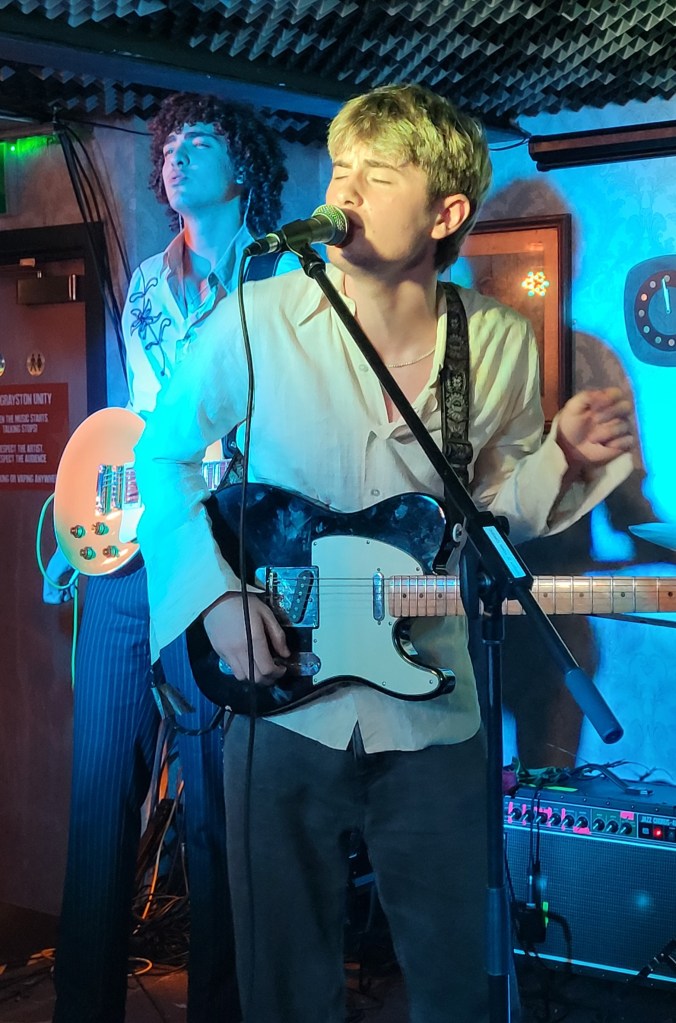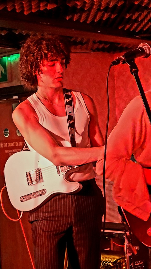 I have perhaps been living in a vacuum, but this gig also saw a major line up change for L’objectif. The original pairing of Saul Kane (vocals) and Louis Bullock, had since 2020 been supplemented by Dan Richardson (guitar) and Ezra Glennan on bass.