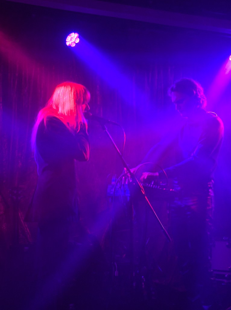One in leather trousers and dark roll neck sweater in charge of electronics, facing the vocalist, who held their hand to their ear for much of the gig, as if they were taking a call.
