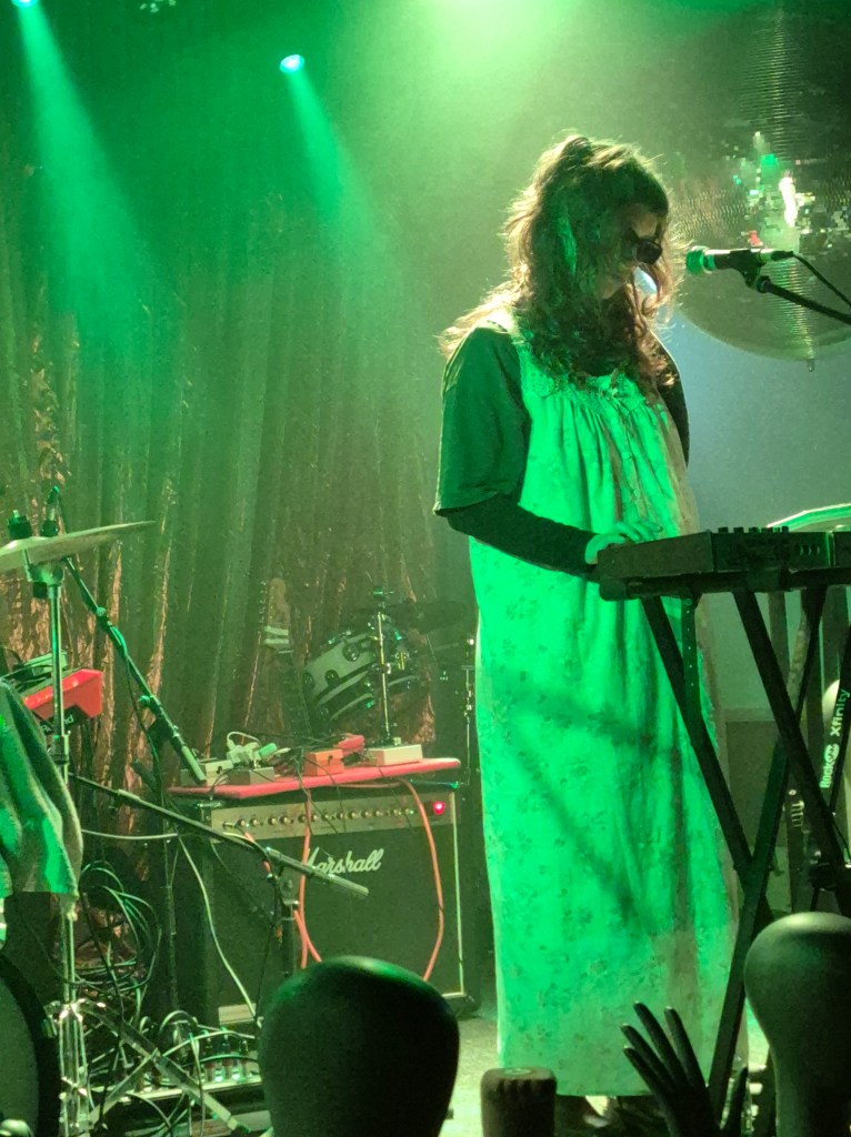 Musically it felt a little like a technicolour enhanced version of 1980’s Siouxie Sioux meets Sigue Sigue Sputnik with a little ‘John Wayne is Big Leggie’ fun sprinkled on top. However with two guitars, bass and drums there was also a throwback to the raw punk sounds and attitudes of bands of my youth; Delta 5, The Raincoats, The Gymslips.